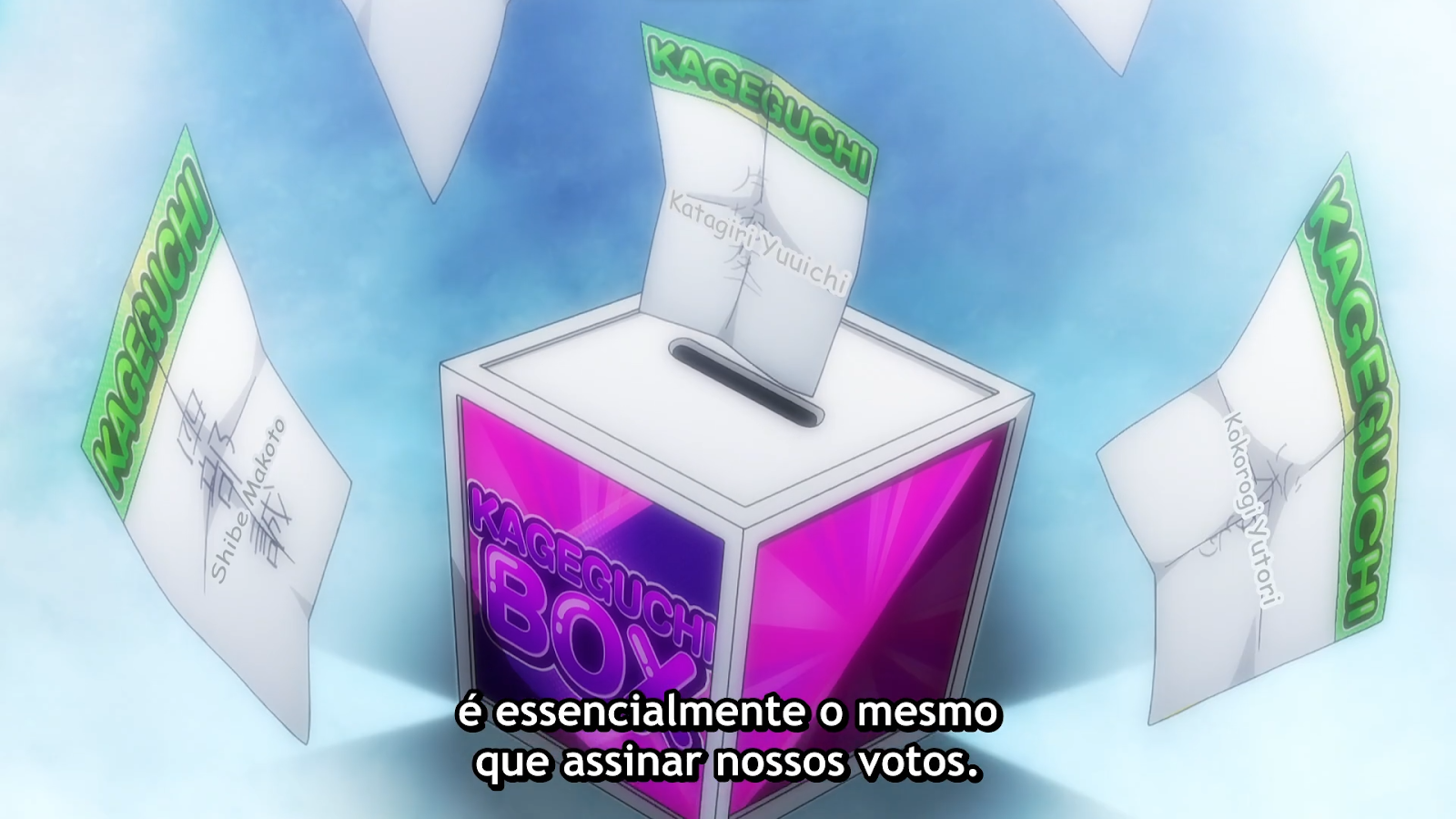 Kokorogi não consegue e fica travada até o final do tempo. Sendo assim, automaticamente Yuuichi é escolhido. Kuroki olha para Kokorogi e fala que a partir dali o que acontecerá é resultado de suas ações, mostrando a importância que será não ficar calada.